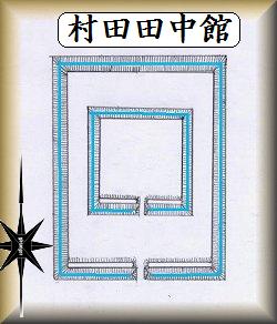 村田田中館は、生品小学校の北側300mほどのところにあった。耕地整理が行われてしまっているようで遺構は見られなくなってしまっている。そこで山崎一氏の図と古い航空写真を基に想像図を描いてみた。方形二重の居館であったようである。