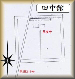 上田中にある長慶寺が田中館の跡である。長慶寺の境内を中心とする方100mほどの城館であったと思われるが、山崎一氏の図によれば、西側の一部は県道によって削られ、綿打中学校の敷地となっている。