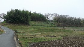 | 東側の土塁。一部は石垣化している。 | 北側の土塁。堀は見られない。 |