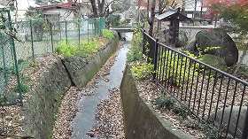 駐車場は公園入口を過ぎて、やや高台に登ったところにある。ここまで来ると、前面に城塁状の土手が見えている。この上が城址公園であるので、間の小川を渡って上に行ってみる。