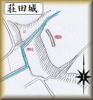 荘田城は、井戸上町の熊野神社の辺りにあり、荘田城址公園となっている。周辺には「荘田城址公園400m→」といった表示が要所要所に出ており、それにしたがっていけば迷うことはない。