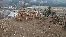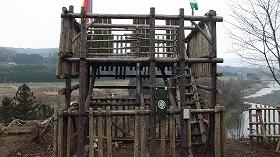 | 城内に建てられた櫓台。 | 柵と狼煙台(右側)。 |