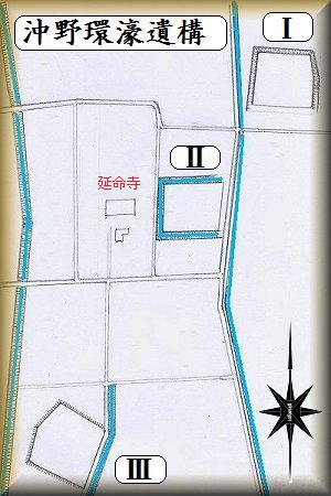 沖野地区には環濠遺跡があり、3つの環濠屋敷の跡が認められる。