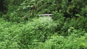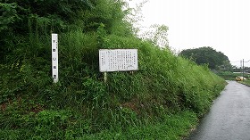 こちらの方向からも城内に向かう道があるようで、その入り口辺りに案内板2が立てられている。しかし、こちらはヤブが酷くて、とてもではないが、案内板のあるところにさえ到達することができなかった。冬場にでもならなければ探索は難しそうである。もっとも雨さえ降っていなければ、夏場でも果敢に飛び込んでいったかもしれないのだが・・・。