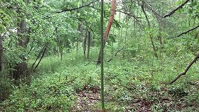 晴れていればどうということもないヤブなのであったが、この日は天気予報に裏切られ、けっこうな雨が降ってしまっている。雨の中濡れたヤブの中を数百mほどの距離歩いていくほどタフではない。というわけで、このルートはあきらめることにした。