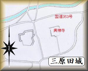 三原田城は、国道353号線の南側にある興禅寺とその西側一帯にあった。