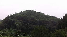 | 北側から遠望する猫城。こちらから尾根筋を進む道もあるがヤブであった。 | 1郭城塁。切岸だけで、堀切はない。 |