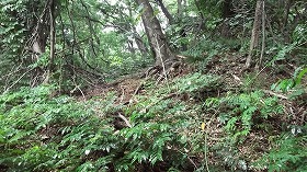 | 北西の城塁。北側は竪堀になっている。 | 東側の城塁。 |