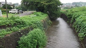 城全体の構造としては、利根川の断崖と、東側を流れる支流によって囲まれた区域が城内ということになるので、東側の川も見てみることにする。こちらも、かつては堀であったらしい雰囲気はあるが、両岸をコンクリートで固められてしまっていたりして、あまり城の堀という感じはしなくなってしまっているのが残念である。