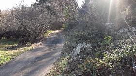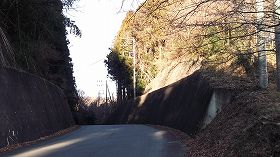 トンネルの入り口のところから南側に入っていく道があるので、これを進んでいく。この道は、トンネルが開削される以前の車道であったようである。この道を進んでいくと、途中で南側に曲がる道がある。そちらに曲がらずそのまま進んでいけばトンネルの反対側に出るはずであるが、こちらは通行止めになっていた。途中で道が崩落してしまっているのであろうか。