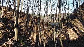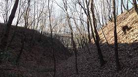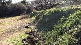 | 3郭から見た北側の堀跡の城塁。 | 北側の堀跡。城塁には折れが見られる。 |