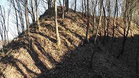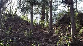| 1郭城塁から東側下の帯曲輪を見たところ。 | 北側先端部の城塁と腰曲輪。 |