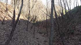 | 4郭の東側にある堀切。 | この堀切の両端は竪堀状になっているが・・・実際は通路と見るべきものかもしれない。 |
