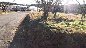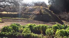 近くまで来ると、城塁状の土手が見えてくるので、「なるほどこれが城址か」と思えるのだが、しかし、周囲には似たような土手がいくつもある地形なので、ちょっと紛らわしい。ちなみに城址には案内板もなにも立てられてはいない。
