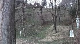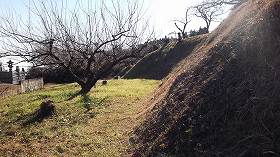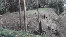 | 4郭と2郭の城塁。 | 4郭から下の墓地になっている段郭を見降ろしたところ。墓地造成に伴う後世の改変もあると思われる。 |