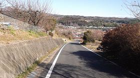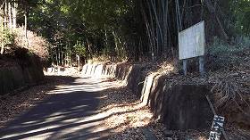 これを車道で登っていくと、やがて台地上に出る。そこで道は2つに分かれている。さらに台地奥に登っていく道と、右ターンして城内側に向かう道とである。もちろんここはターンして、城内側へと進んでいく。