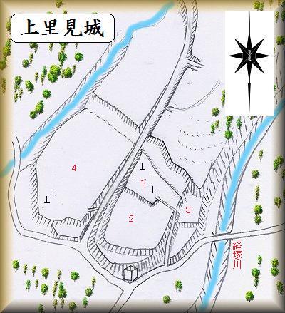それでも、上里見城のあるところは、左右に小川が流れていて、天然の堀を成しているので、これを目印にするとよいかもしれない。1郭は墓地になっているので、これも目印になる。また、北側の平野部からアクセスする場合は、先端部の下に「上山本町山車倉庫」と大書された建物がある。それを目当てに進んでくるのもよいかもしれない。