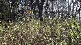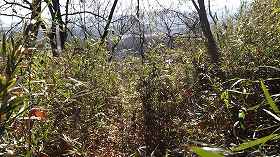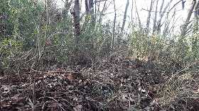 | 2郭との間の堀切。これも笹薮に埋もれている。 | 2郭と3郭との間の堀切。これもまた笹でよく分からない。 |