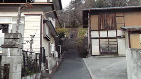 神社の参道は南側の下にあり、ここから民家の間を抜けて、石段をどんどん上がって行くことになる。困ったことに駐車場がないのだが、仕方がないので近くの路肩の脇に停めさせていただいた。