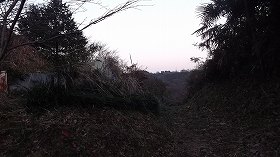 | 2郭との間の堀切。通路として使用されていたもののようだ。 | 2郭内部は削平されて、すっかり様相が変わってしまっている。 |