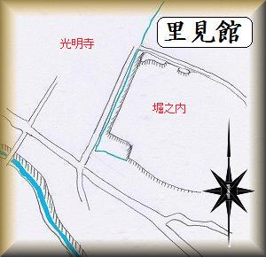 長野新幹線の高架のすぐ南側に光明寺があるが、この寺院に隣接した東側が「堀之内」と呼ばれ、里見氏の居館があった所であると言われている。館内部は民家の敷地となっているため、内部確認は難しいが、外を一周すれば、現状はだいたい把握できる。
