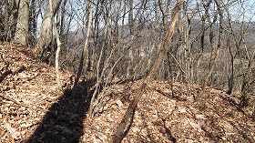 1郭から北側にかけては傾斜した尾根しかない。この部分はとうてい、郭であるとはいえないだろう。