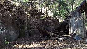 | 1郭内部。わずかな平場となっているが、削平はきちんとされていない。 | 東側先端にある3の郭には、かつて修験道のお堂があったが、今は荒れ果ててしまっている。 |