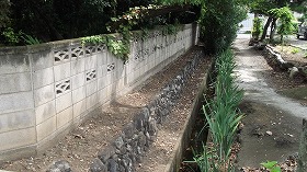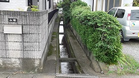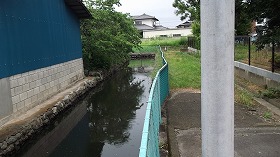 | 民家前に残る水堀。 |