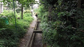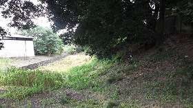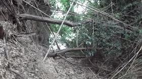 | 神社南側の竪堀。下は井野川の断崖である。 | |