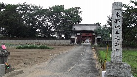 | 山門脇の案内板と水堀跡。 | |