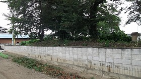 東側の土手jは往時のままであると思われ、水堀跡と思われる水路も残っている。しかし、北・西・南の三方向については、遺構は湮滅してしまったようである。