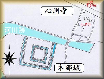 木部集落北側にある心洞寺は、木部城主の菩提寺であるが、この寺院の前面には土塁が残っており、かつての城館であったことを思わせる。『関東地方の中世城館』ではこちらを「木部氏館」としている。木部氏の本来の館がこちらであったとしたら、木部城の方は、戦国期に新たに築き直されたものであったのかもしれない。
