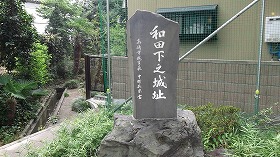 その名も下之城町の中心部一帯が和田下之城の跡であり、北側にある小公園に城址碑と案内板が設置されている。お盆の磁器に訪れたので、公園には盆踊りの提灯が多数ぶら下がっていた。小さいながらも、地元の人たちは、盆踊りに集まってくるのであろう。
