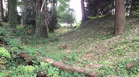 | 南側の張出内部。 | 北側の城塁。堀はだいぶ埋められているようだ。 |