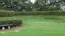 | 館跡内部。 | 南側の城塁。正面奥に張出部分が見える。 |