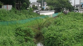 | 八幡神社背後にある堀。深さ3m、幅7mほどの大きなものである。 | 堀の東端部分。 |