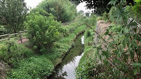 | 城塁の折れ。 | 早瀬川沿いに満勝寺を見たところ。 |