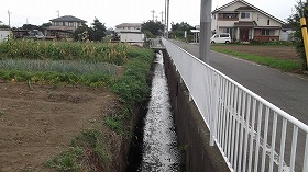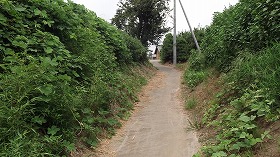 県道の東側にも、民家の奥に「堀跡?」と思われる部分の一部が見えそうなところがあったのだが、こちらは完全に民家の奥なので、勝手に進入することはできない。