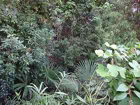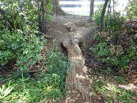 | 東側の土手と堀跡。 | 北側に残る水堀跡。ちゃんと残っているのだが、ヤブになっていて写真ではさっぱり分からない。 |
