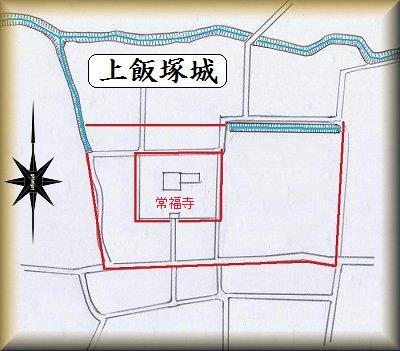 飯塚町にある常福寺が、上飯塚城の主郭の跡である。したがって、飯塚城を訪れるには、この寺院を目当てにしていけばよい。寺院の境内に車を停めておくこともできる。