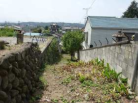 | 西側の堀跡。びっしり墓が建てられているが、堀跡であったことは分かる。 | 南側にあった模擬天守。個人のお宅のようだが、なかなか雰囲気がある。 |
