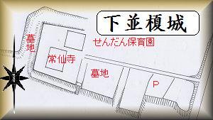 並榎町の常仙寺が下並榎城の跡である。しかし、この辺りは家が建て込んでいて道が狭くなっているため、下手な方向から接近しようとすると細い路地に車の移動に苦労させられる(実際に苦労してしまった口である)。車はこの位置にある寺院の入口からアクセスするようにした方がよい。ここまで来れば駐車場も完備している。