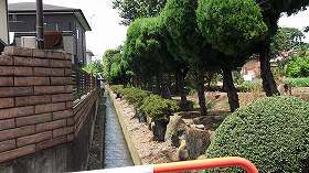 遺構は見る影もないが、かつての堀は、水路となって名残を留めている。なかなかきれいな水の流れる水路であり、この土地に豊かな湧水点があることが理解できる。