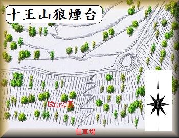 十王山烽火台は、現在は県道10号線のバイパス工事のために富岡城とは分断されているが、本来は富岡城とは尾根続きであり、富岡城の出丸であった部分ではないかとも思われる。