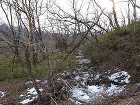 | 田篠内出北側の段差。一段高いところが砦跡であろうか。 | |