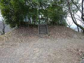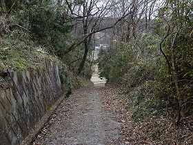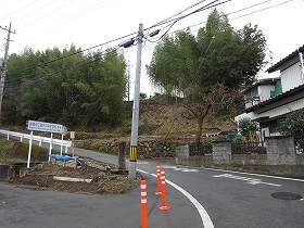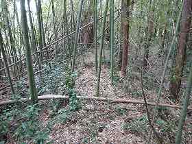 台地の基部の方には堀切があるべきはずであるが、現状では見られなくなってしまっている。かなり南側に切り通しの通路があるのだが、これを堀切跡と見るかどうかは判断に迷うところである。が、まあ、後世の通路と見るのが無難である。