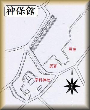 神保の辛科神社の北東側が神保氏の館の跡であったと言われている。