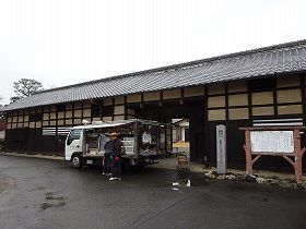 南側の正面に行くと、そこにはいかにも代官所を思わせる門や土塀、土蔵などが見えている。しかし、内部は民家となっているため、内部を見学することはできない。
