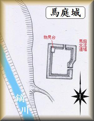 上信電鉄馬庭駅の北西300m、馬庭念流道場の周辺に馬庭城が築かれていた。