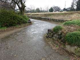 土塁と堀は南端部で行き止まり、南側の堀は宅地開発によって埋められてしまったようである。